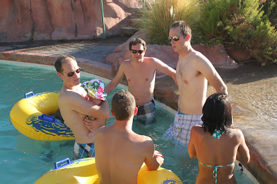 We went and had a little "stay-cation" this summer with my husband's two brothers and their wives and kids. The guys went to their Pre-Paid Legal convention during the day while us ladies took care of our babies, fed, talked, and got them down for naps. We all went swimming and enjoyed floating in the lazy river and soaking up the sun all afternoon. The first night we got there, we realized we were all starving and ordered a pizza. The only problem was that they forgot about us so after an hour and a half of waiting and getting angry because we were famished at that point, our husbands went and picked it up and we got our pizza's for FREE. So it all worked out in the end (it always does:))