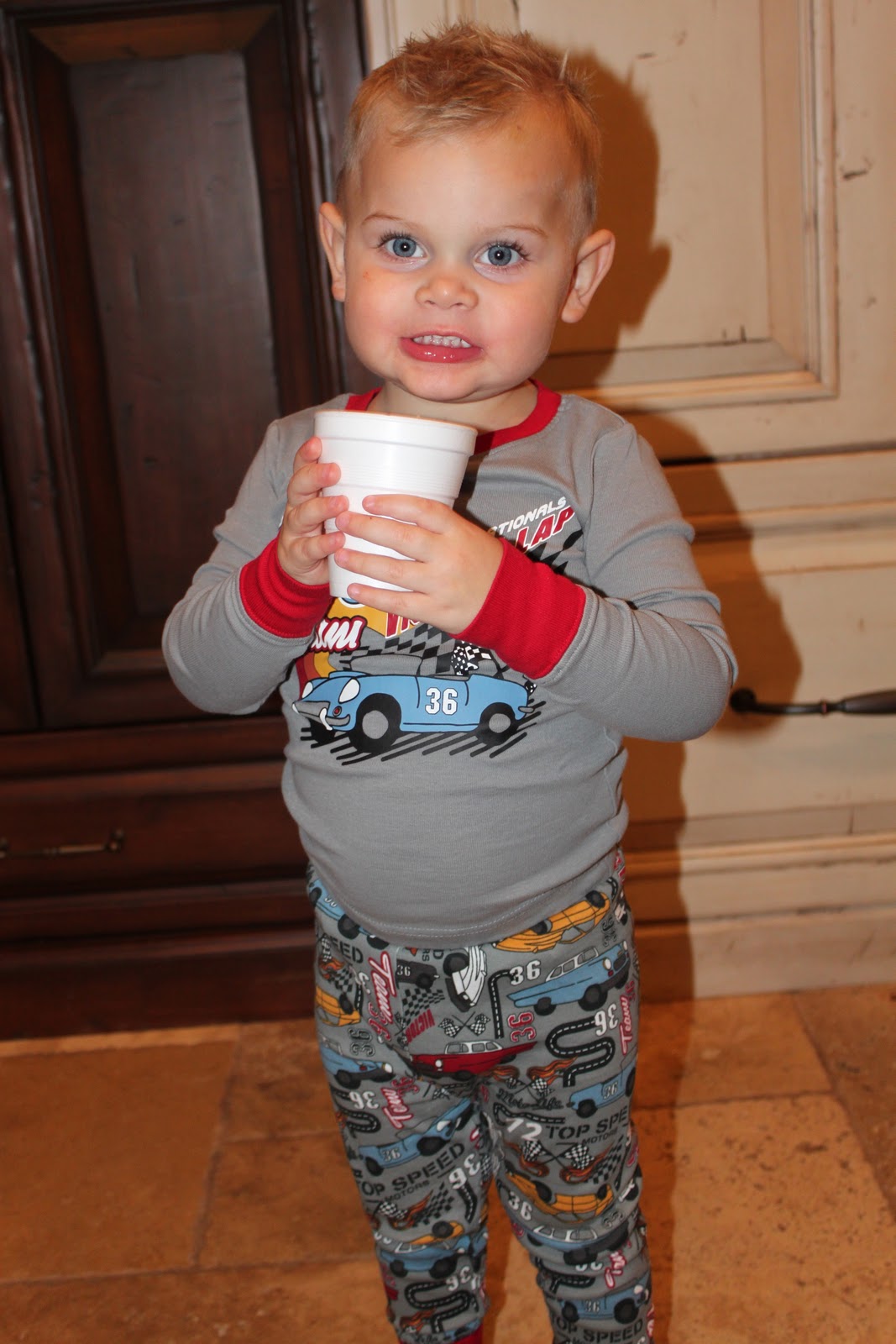 Jase is 4 and Parker is 2... Parker had to switch Jase's 4T pajamas because his 3T were a little too snug! He looked like Gus Gus on Cinderella with his belly sticking out most of the night. It was pretty awesome! I love that little "root beer belly!"